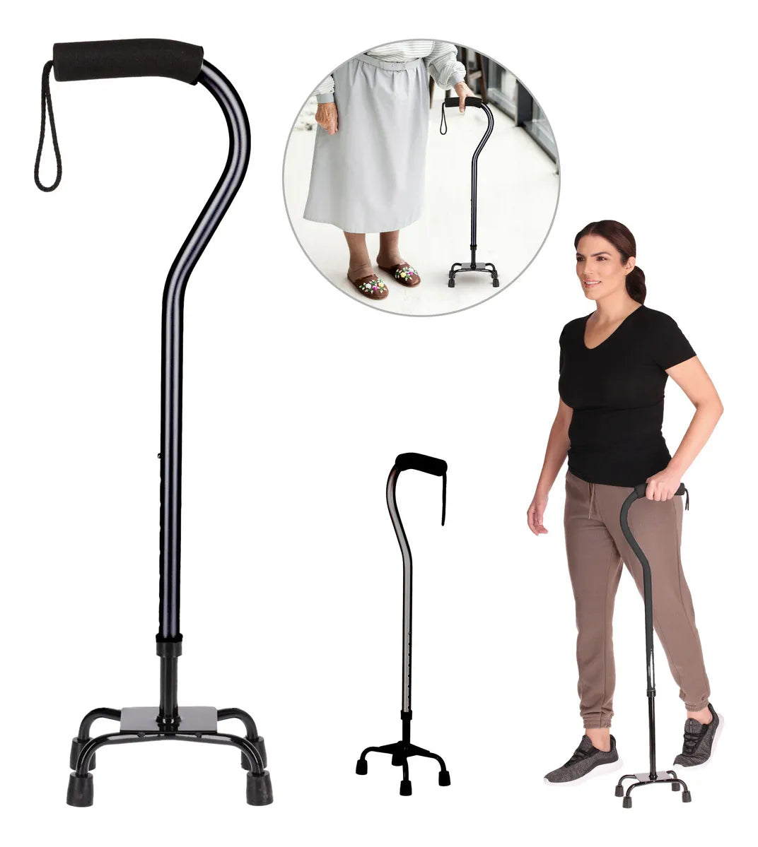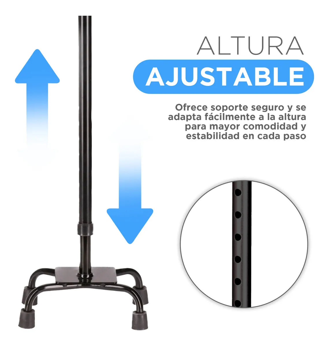 Diseñado para ofrecerte un apoyo firme y ergonómico, este bastón de cuatro puntos con cuello de ganso brinda mayor equilibrio, agarre cómodo y ajuste de altura para adaptarse a tu estatura y rutina diaria.
